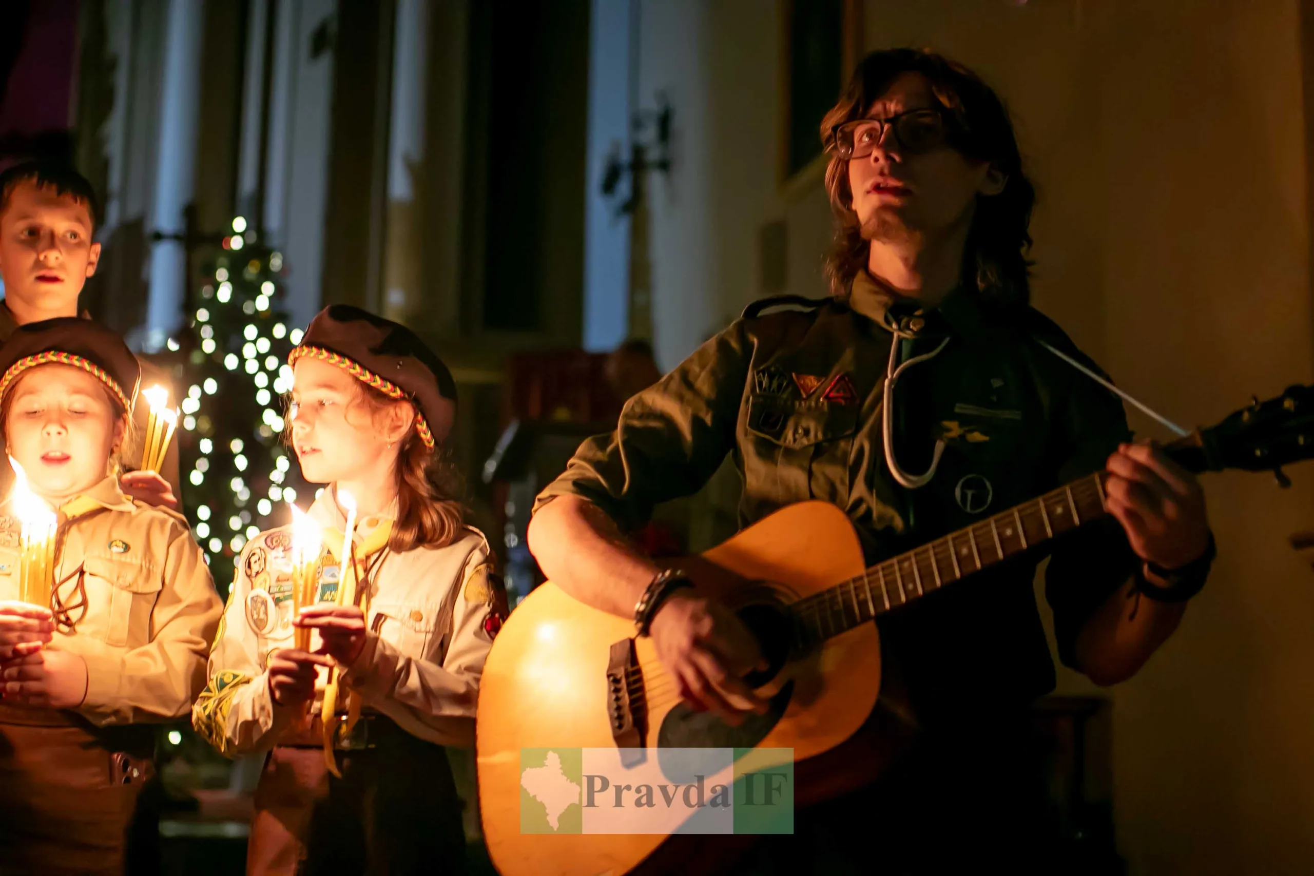 Цьому передувала урочиста передача франківськими пластунами Вифлеємського вогню для храму та його вірян.