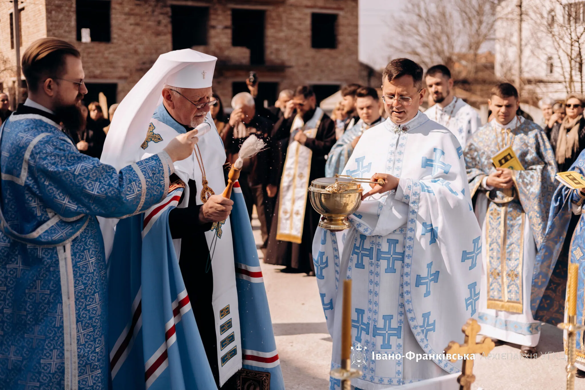 Під час освячення Митрополиту співслужили настоятель парафії о. Йосафат Бойко, ВС, а також численне духовенство, запрошене розділити цю важливу для громади мить.