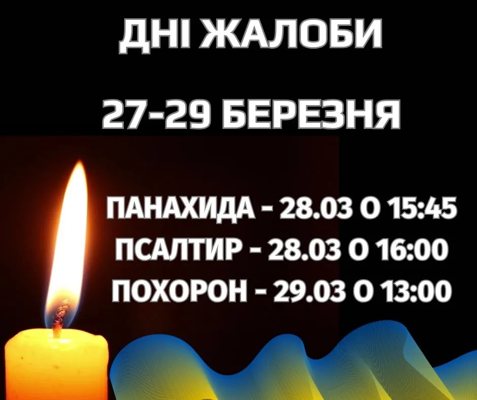 Панахида за загиблим відбудеться у суботу, 28 березня, о 15:45, після чого о 16:00 розпочнеться читання Псалтиря.