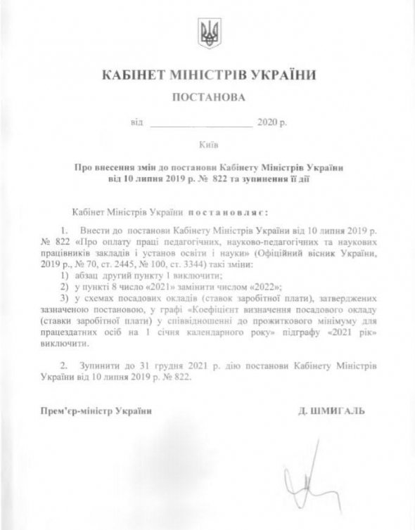Постанову Кабінету Міністрів України про замороження зарплат освітянам опублікував народний депутат з “Європейської Солідарності” Олексій Гончаренко.