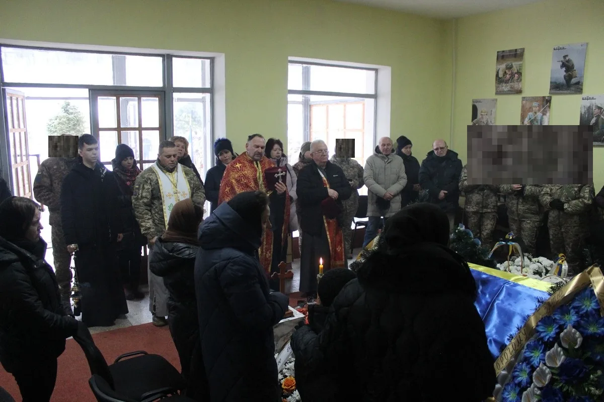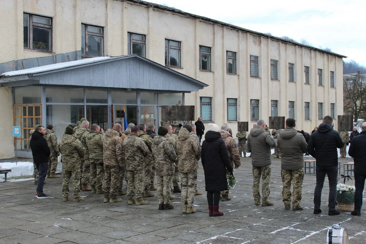 Похорон воїна з прапором України взимку