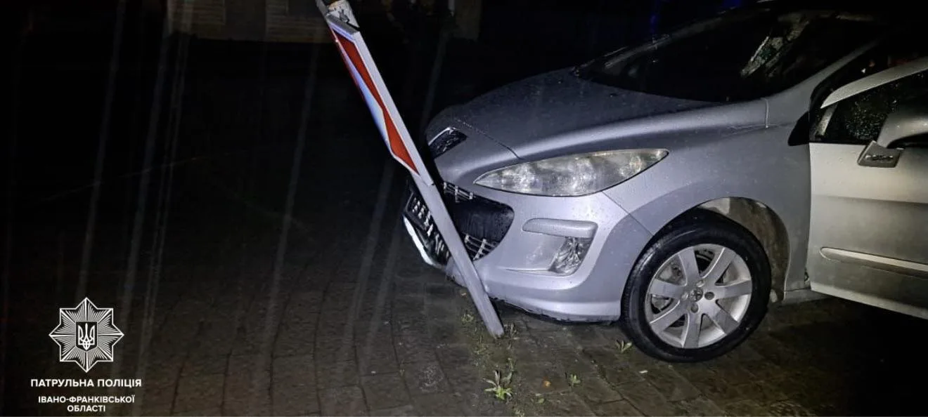 Інспектори встановили, що водій автомобіля Peugeot був неуважним за кермом, не обрав безпечної швидкості руху та, рухаючись на перехресті з круговим рухом, здійснив наїзд на дорожній знак.