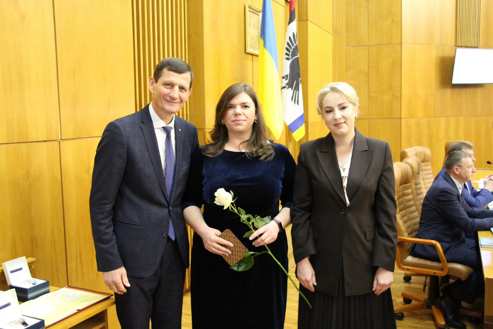 Перед тим, як депутати розпочали роботу, голова обласної ради Олександр Сич разом із головою ОДА/ОВА Світланою Онищук вручили жителям Прикарпаття обласні нагороди з нагоди кількох знаменних дат — Дня Збройних Сил України, Міжнародного дня волонтера, Дня місцевого самоврядування та століття від народження Опанаса Заливахи.