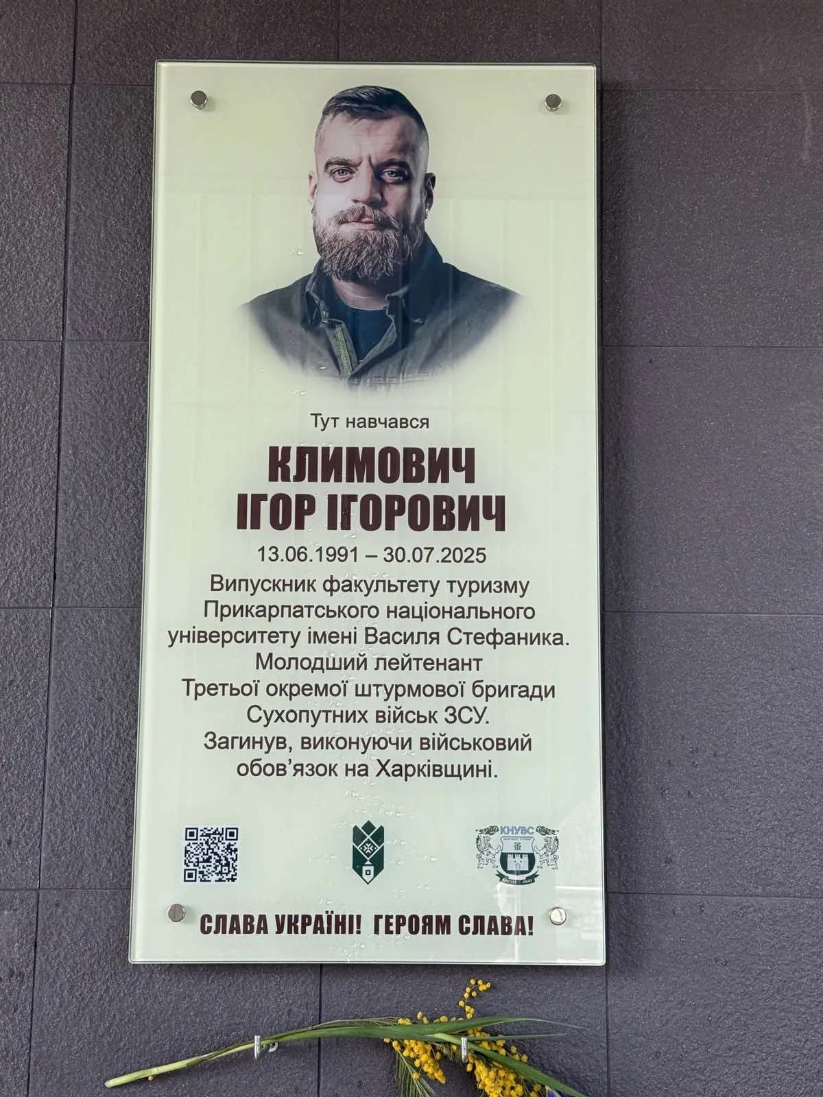 5 березня в Івано-Франківську на фасаді Карпатського національного університету імені Василя Стефаника відкрили меморіальні дошки Ігорю Климовичу, Владиславу Сенюку та Олегу Денису.