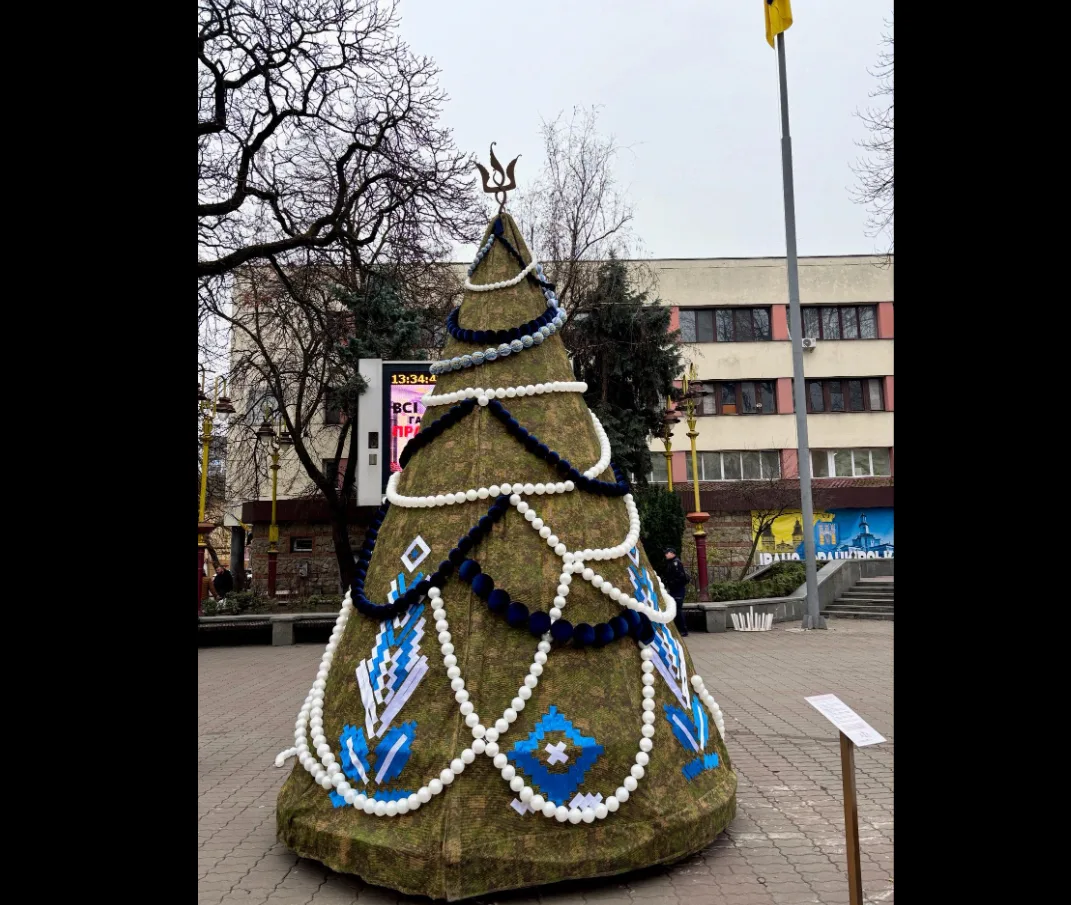 У центрі Івано-Франківська вже встановлена символічна новорічна ялинка. Вона створена з піксельної тканини та прикрашена українськими мотивами, ставши знаком вдячності й підтримки всім, хто захищає країну.