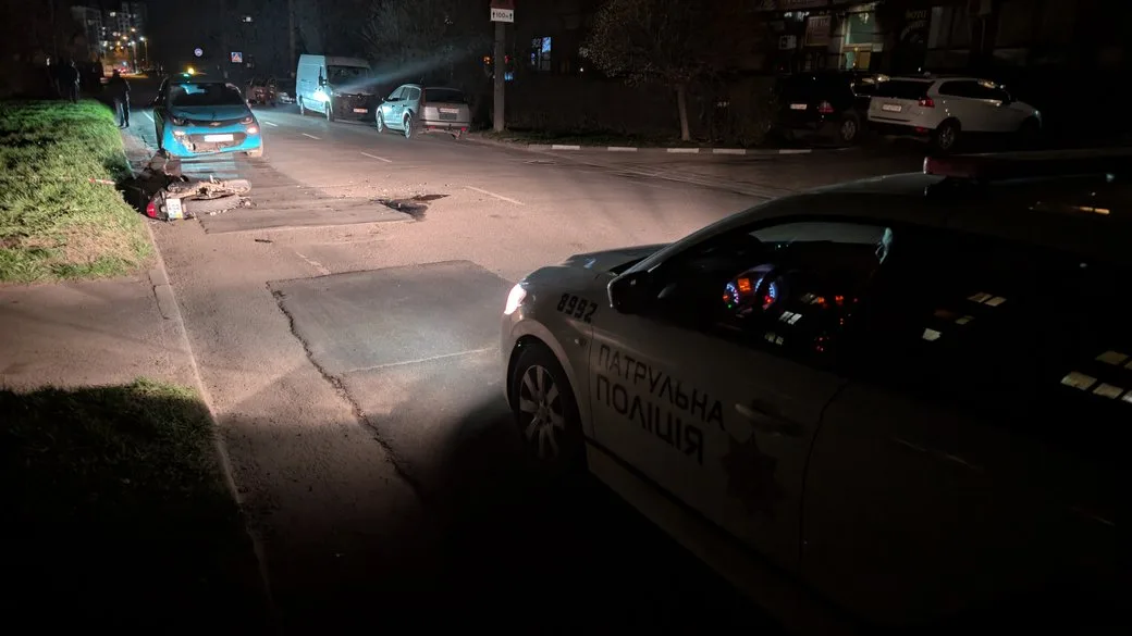 Зі слів патрульних поліцейських, водій мотоциклом виїхав на зустрічну смугу й зіткнувся з авто, пише Суспільне.