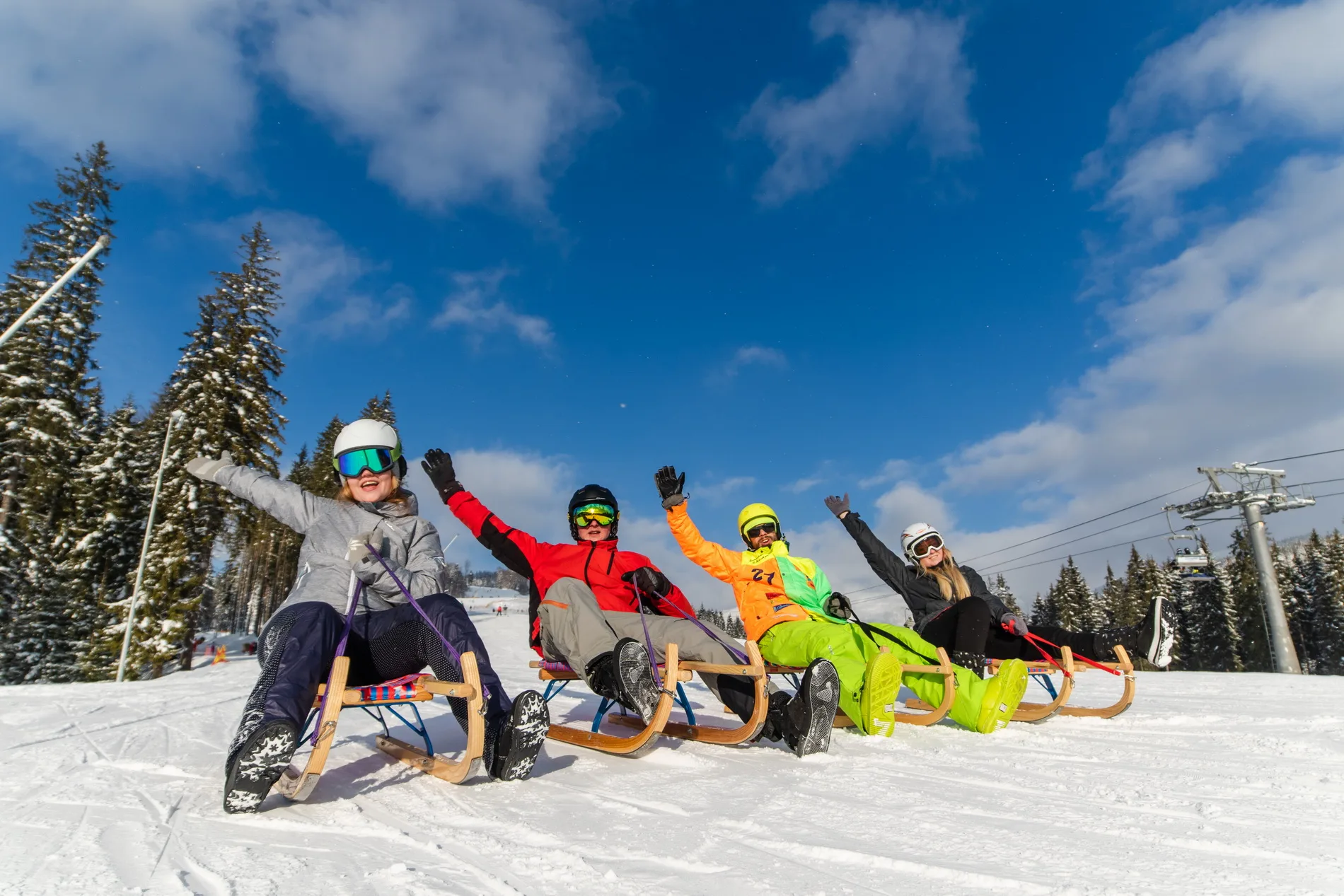 Катання на гірських схилах навесні має свої переваги. Насамперед це комфортна температура, довший світловий день, м’який сніг з оксамитовою текстурою. Санна траса в Буковелі розтягнулася майже на кілометр, а круті повороти та захопливі віражі безумовно подарують незабутні враження. Обмежень за віком немає: малюки до 6 років катаються разом із батьками, а старші діти — уже самостійно.