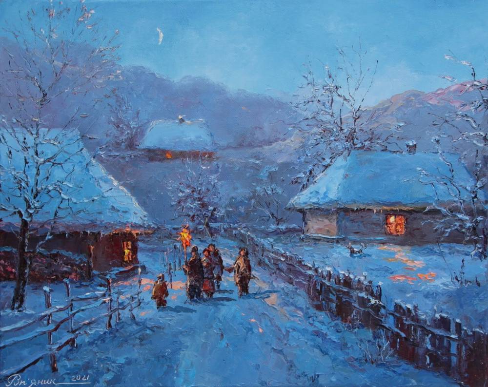 Ігор Роп’яник, “Колядники”, полотно, олія, 40х50 см, 2020р.