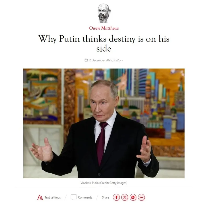 «Путін вважає, що перемагає, і показує, що інтереси США та Росії збігаються», – підкреслює журналіст. На його думку, одним з аргументів на користь того, що ситуація складається на користь країни-агресора, Путін називає просування на фронті. «Росія хоче повернутися до 28-пунктного плану, який повністю відповідає її вимогам. І вона вважає, що має на це право через те, що відбувається на полі бою. Не випадково напередодні візиту делегації США до Москви Росія оголосила про захоплення Покровська, ключової стратегічної цілі в Донецькій області. Це було послання, покликане ствердити домінування Росії та, як наслідок, посилити її вимоги, а не послабити їх», – йдеться у статті.