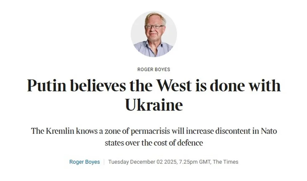 Путін щосили затягує мирні переговори щодо завершення війни в Україні, у такий спосіб він планує завдати Заходу потрійного удару, який виходить за рамки перетворення України з сучасної держави на покірну провінцію. Таку думку висловлює оглядач The Times Роджер Бойс. За його совами, по-перше, глава країни-агресора прагне хоче перетворити прикордонні з Росією території на зону політичної перманентної кризи. Для чого? Бо це – найпростіший спосіб утримати НАТО від розширення свого впливу.