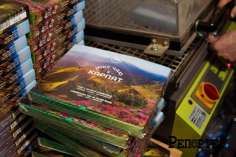 От, зараз складають набір «Чайні дари Карпат». Тут та-а-ка швидкість рук, що й автоматів не треба! Далі готові набори несуть на запайку – це вже кінцевий етап.