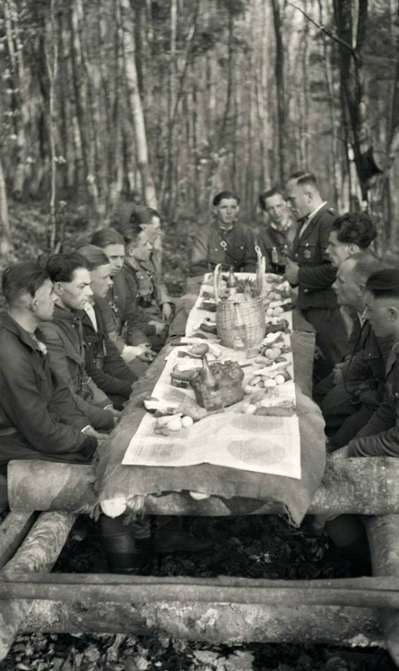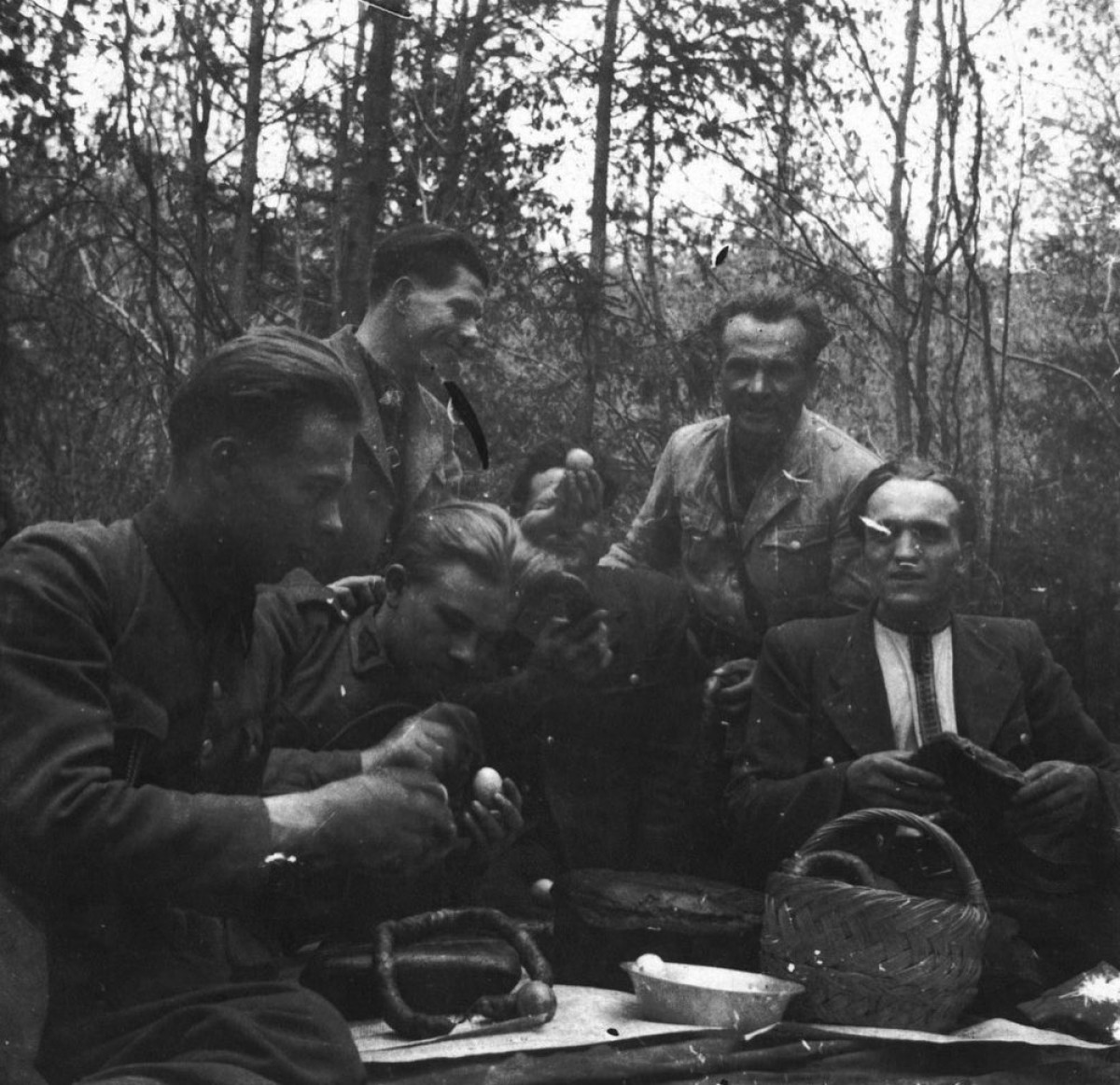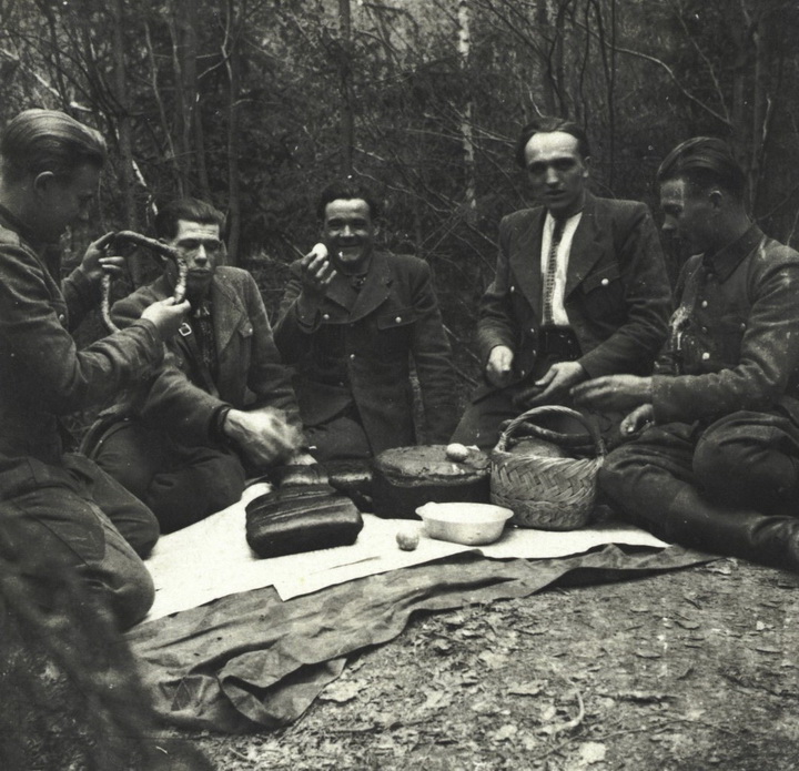 На цих фото видно святкові столи в лісі, повстанців із пасками та кошиками, польові відправи і спільні зібрання на Великдень. Світлини фіксують поєднання військового побуту, релігійної традиції та взаємодії з місцевими громадами, які приносили продукти й підтримували підпілля.