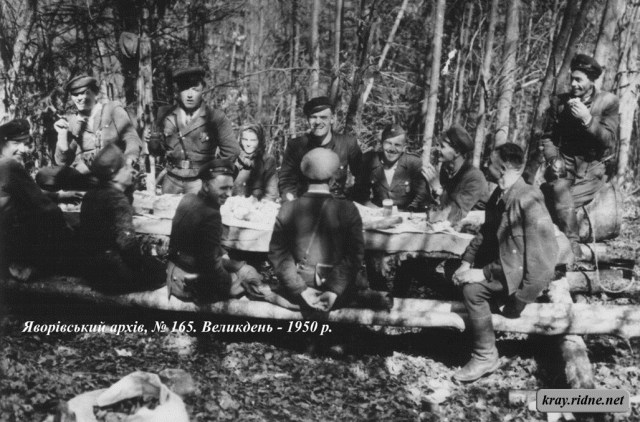 «Вже після 45-го в більшості змушені були святкувати у лісі, був великий ризик, що у селі зроблять облаву. У лісах, поки одні стояли на сторожі, інші робили столи зі зрубів, замість скатертин була хвоя. А на столах – освячені паски, яйця, ковбаси», — пояснює директор музею визвольних змагань Ярослав Коретчук.