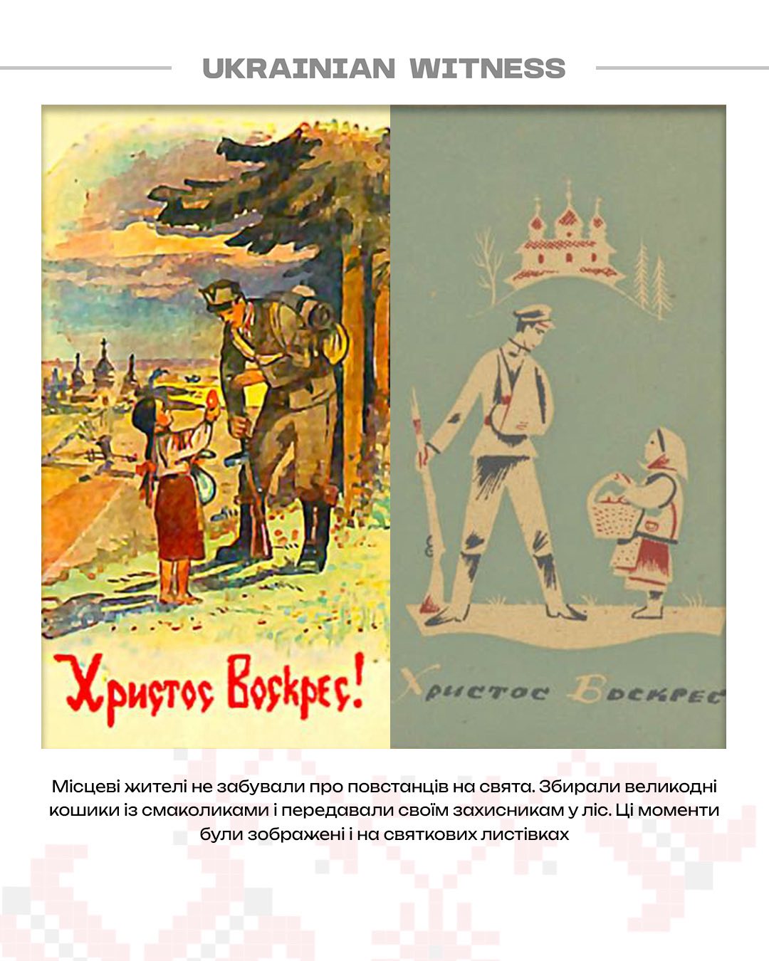 «Поки була можливість, продовжує Коретчук, у 1944-45 роках, доки радянська влада не могла повністю встановитися, повстанці часто ходили на Великдень у найближче село. Відстоювали службу в храмі, а потім розходилися по людських домівках. Тобто святкували, як і всі», — зазначає історик.