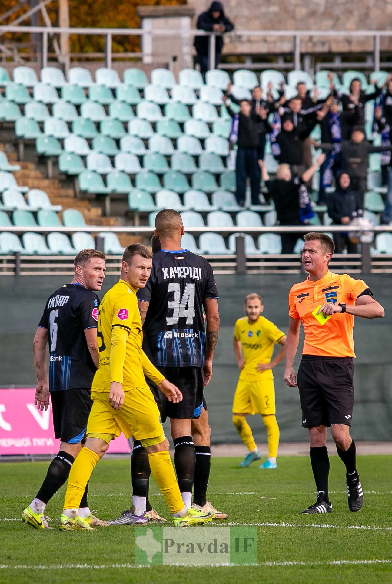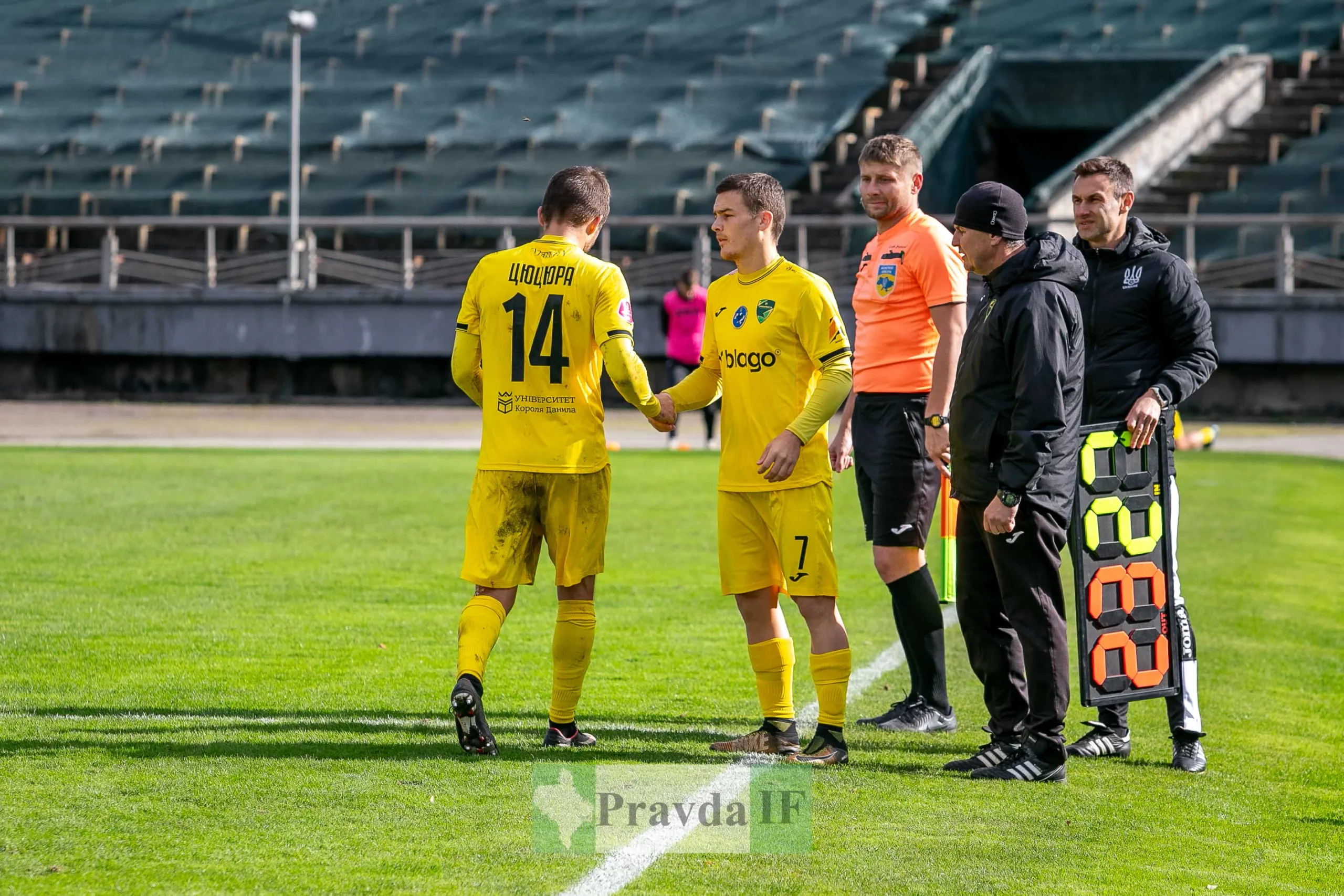Забити прикарпатцям не вдалося, але вони отримали дуже серйозну перевагу на весь залишок матчу. На фланзі мав зіткнення з уродженцем Одещини Швецем вінгер Чорноморця Герич і за міру реакції був вилучений з поля. Втрата найбільш активного гравця атаки при травмі найкращого гравця Першої ліги вересня Хобленка додала тренерському штабу гостей дуже серйозного головного болю.