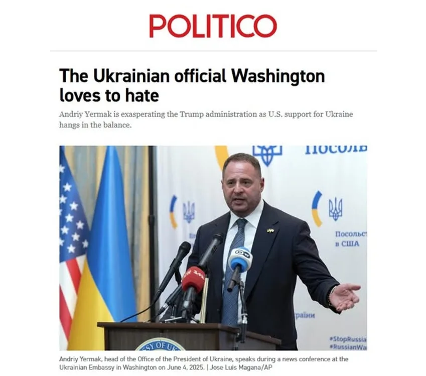 Американське видання Politico присвятило Єрмаку матеріал про те, що він викликає роздратування у Вашингтоні