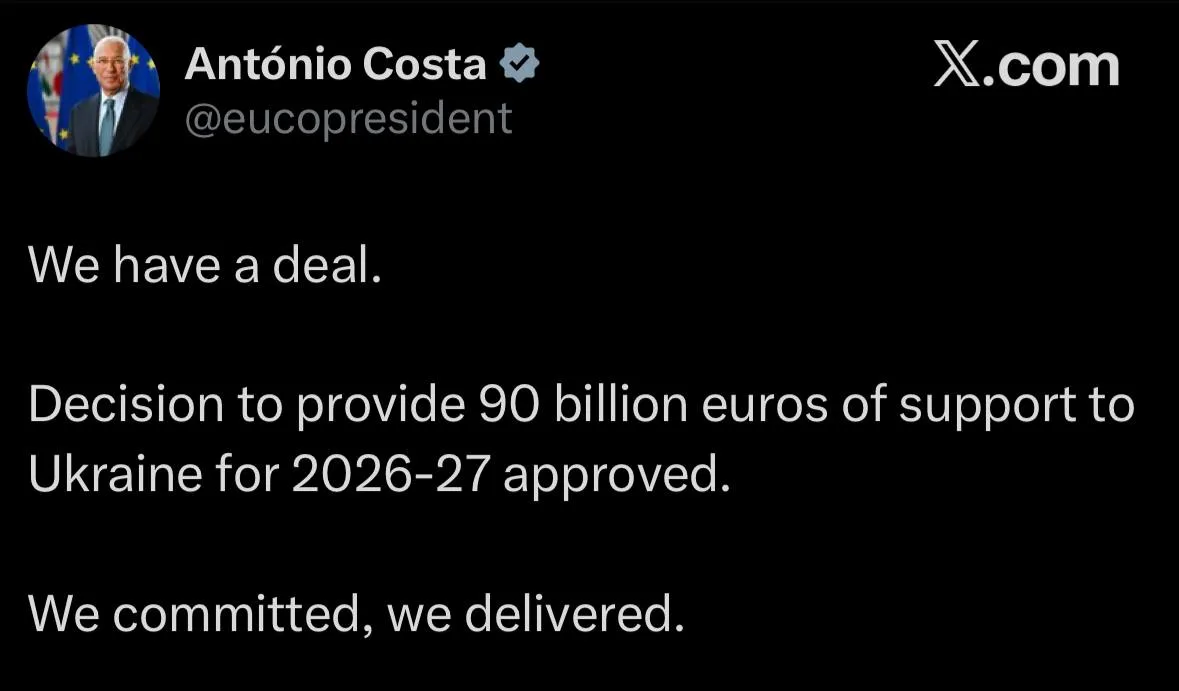 Лідери ЄС вирішили надати Україні 90 мільярдів євро допомоги замість використання заморожених російських активів для кредитування.