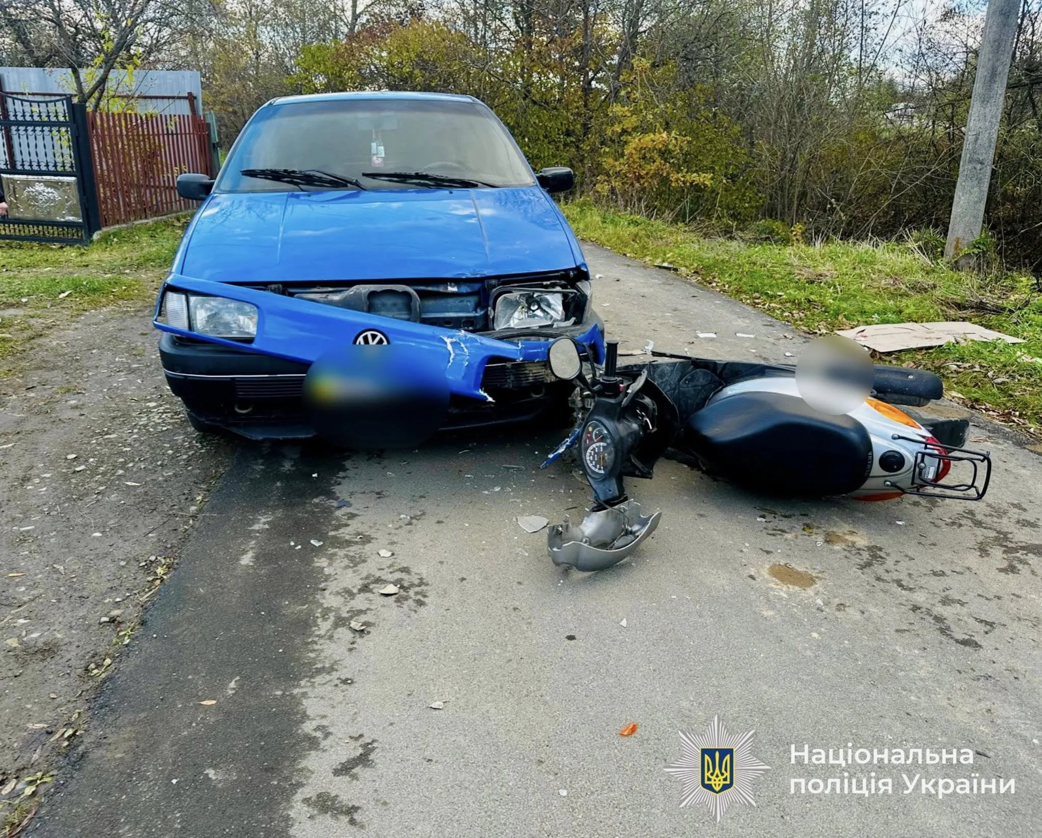 Внаслідок аварії водійку двоколісного транспорту доставлено до лікарні, пише Поліція Івано-Франківської області.
