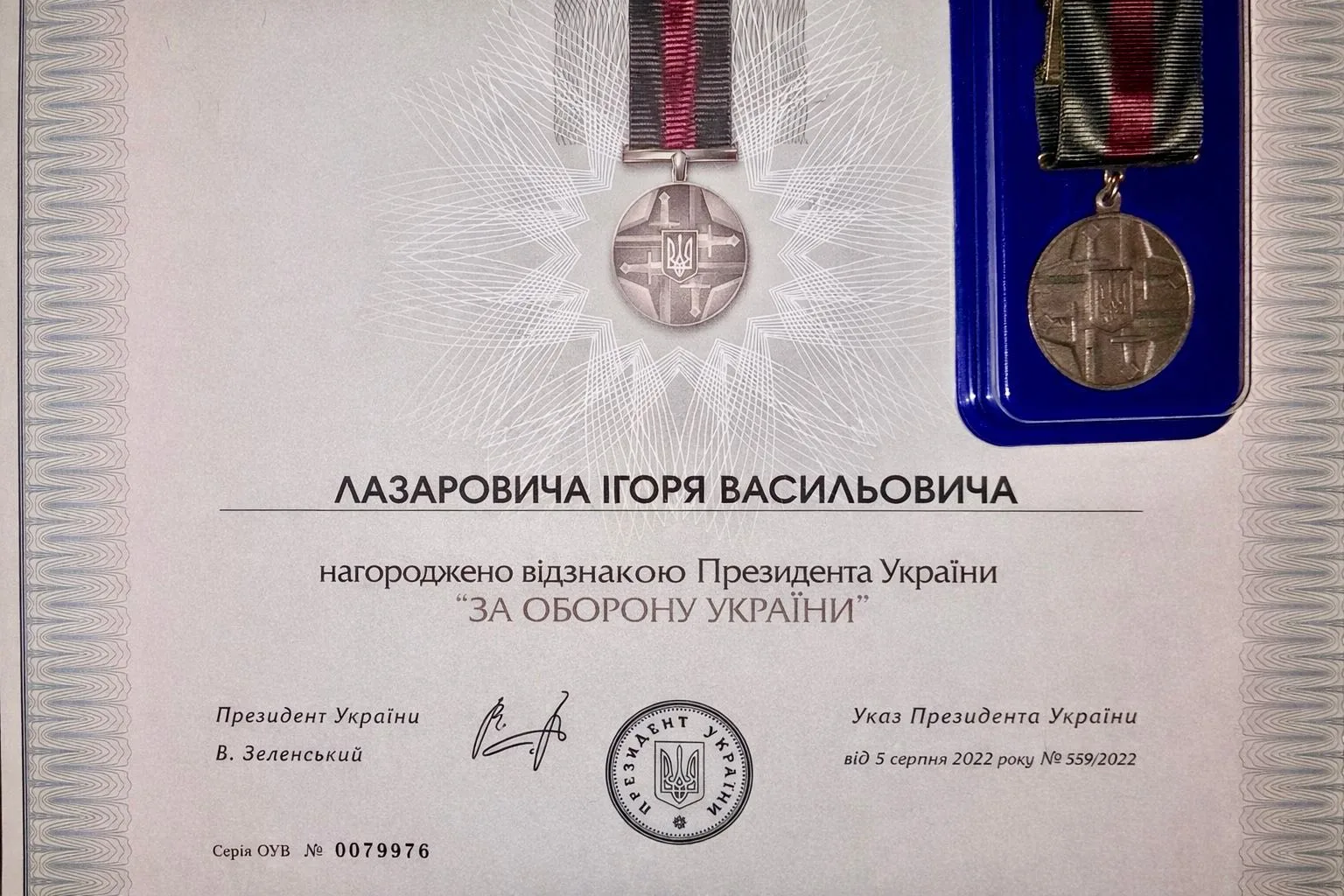 Захисник України Ігор Лазарович, житель села Серафинці Городенківської громади, отримав почесні державні та військові відзнаки за мужність, відданість присязі та сумлінну службу Україні.